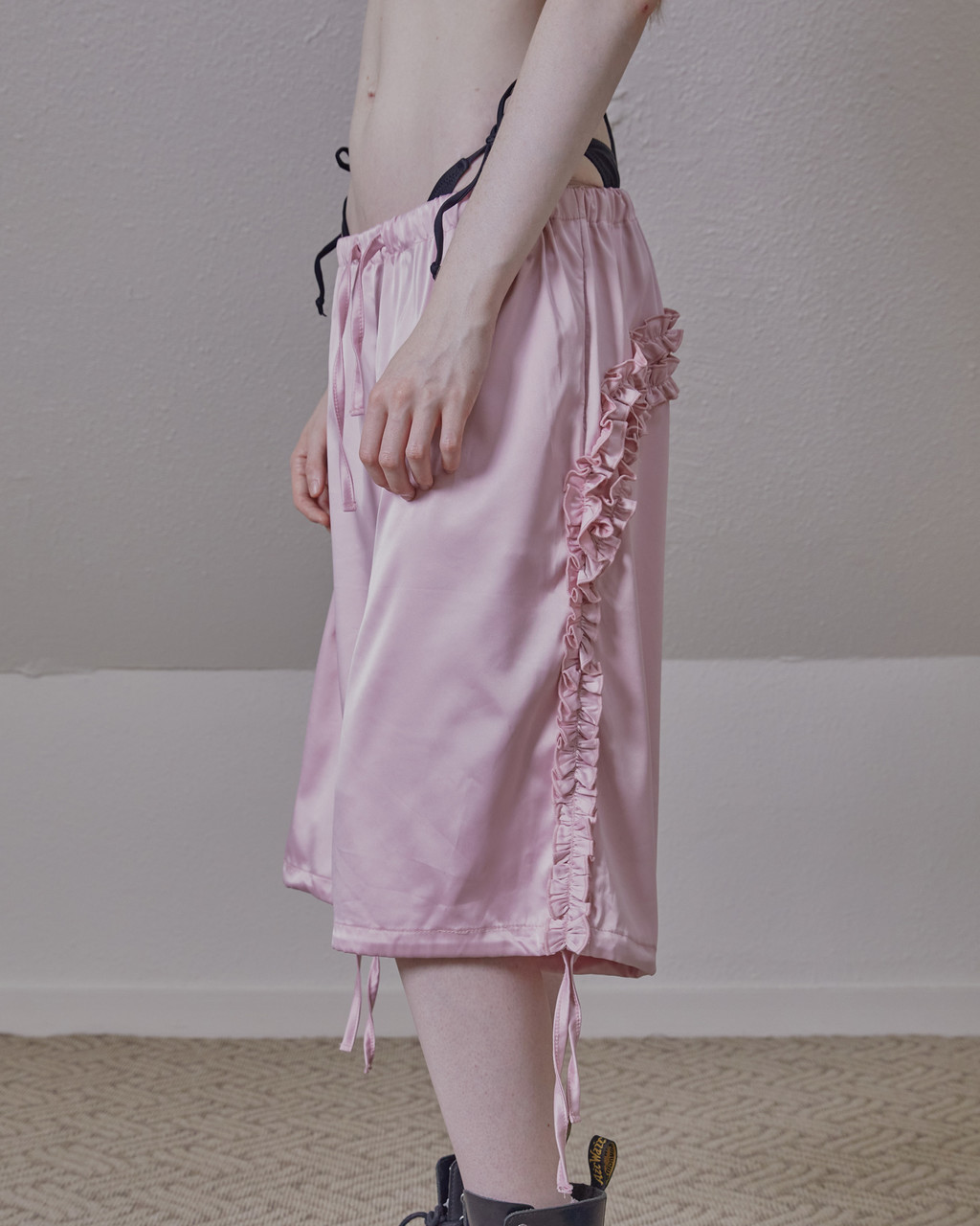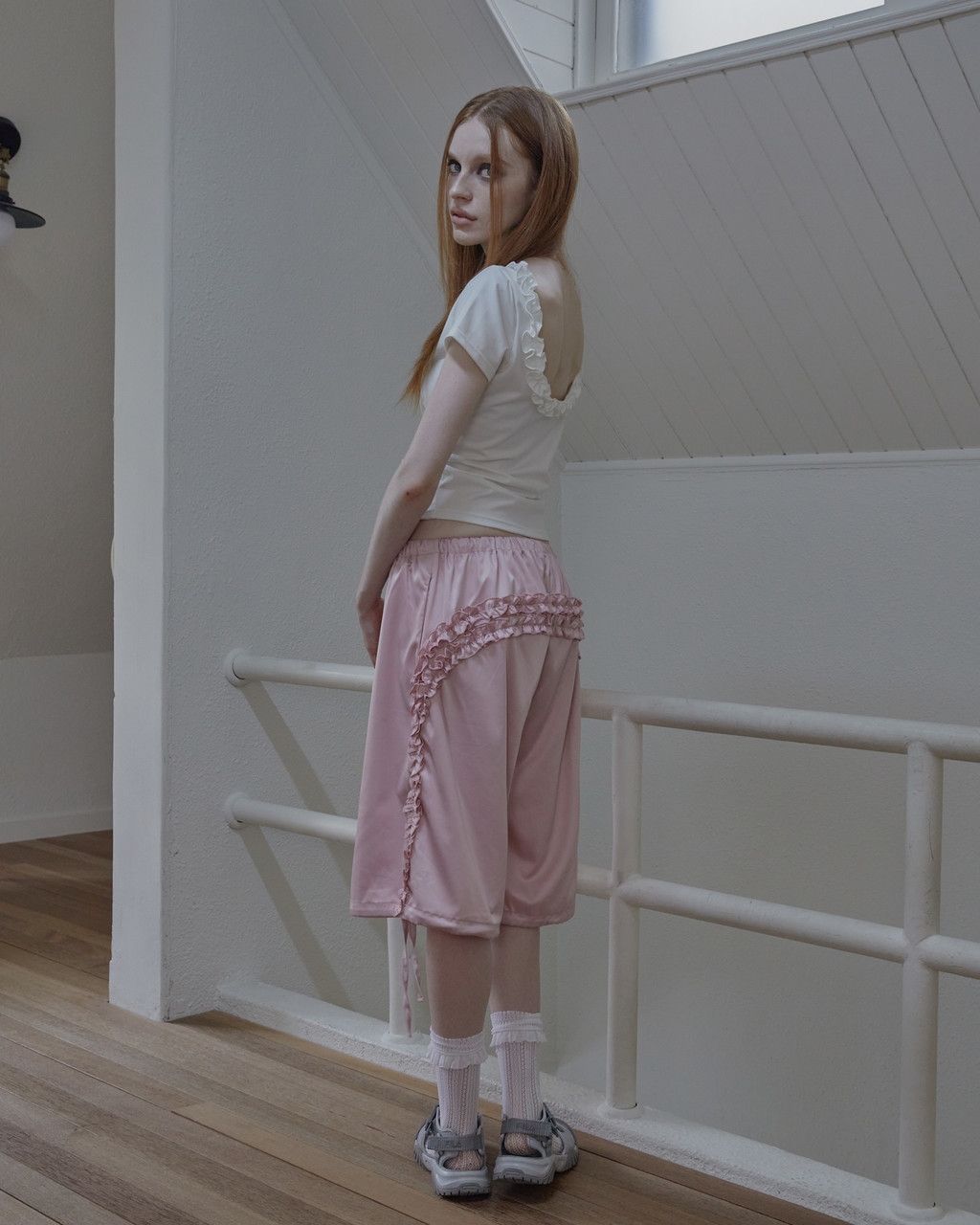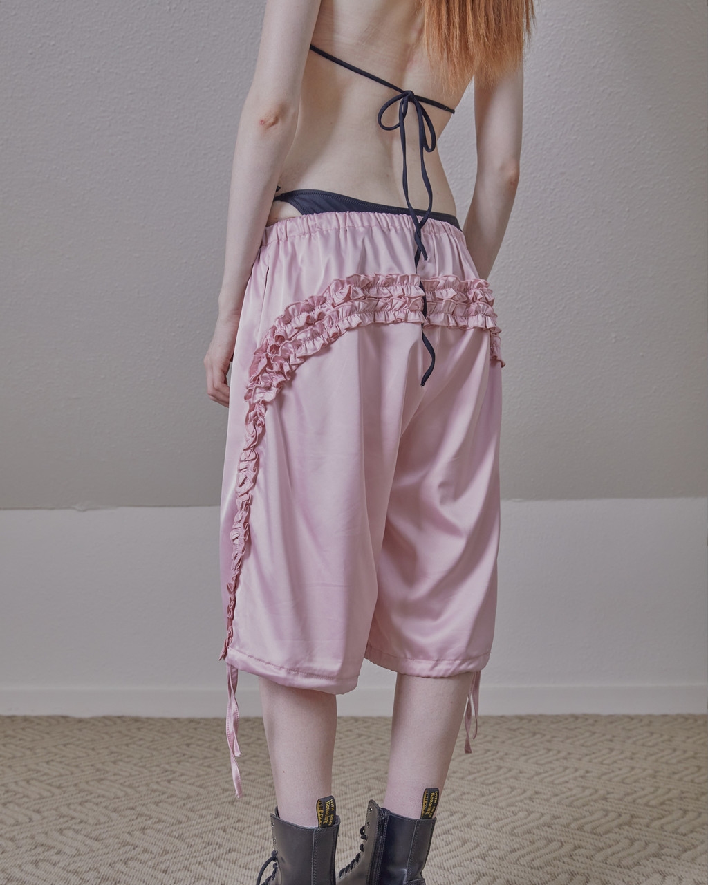 -엉덩이 라인부터 밑단까지 연결된 풍성한 러플 디테일