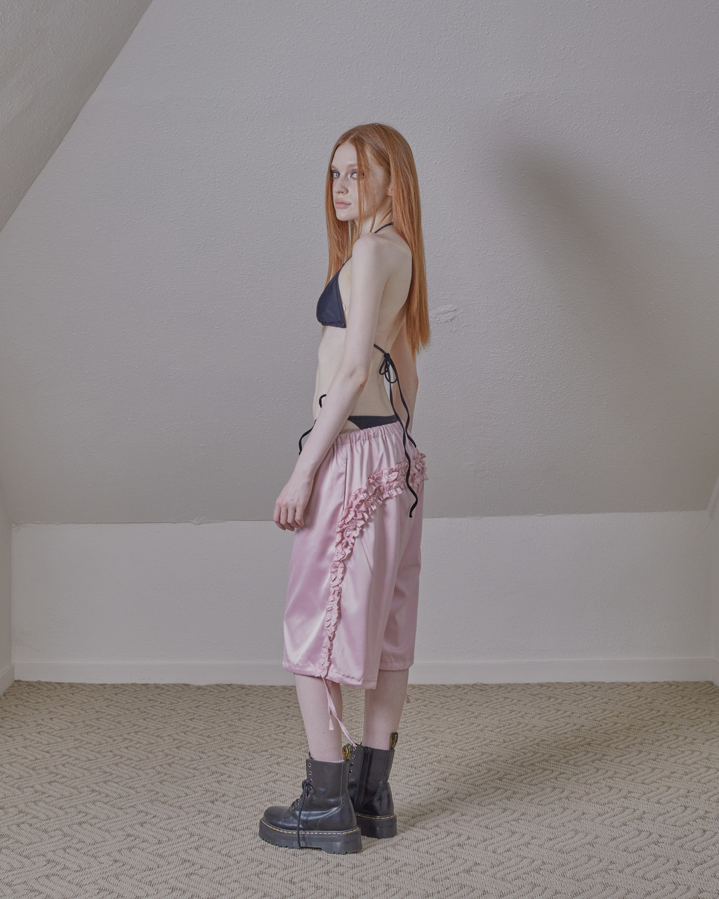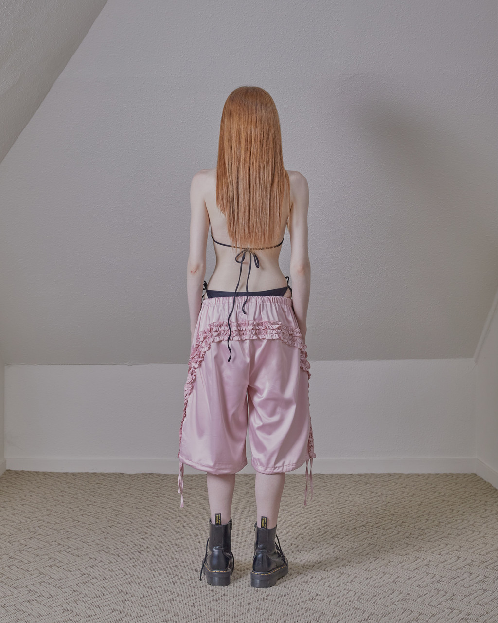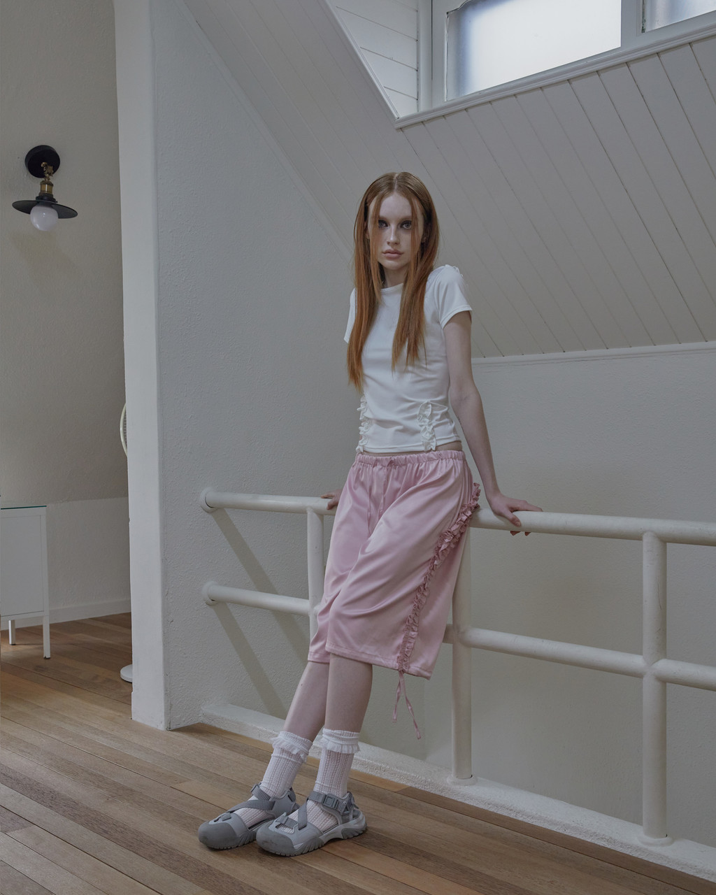 -엉덩이 라인부터 밑단까지 연결된 풍성한 러플 디테일