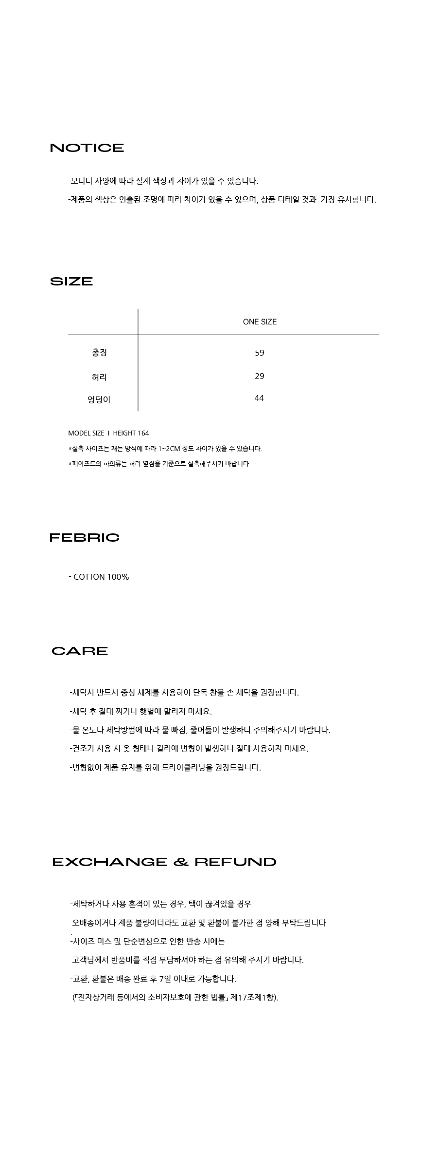 - 수령일로부터 7일이내 c/s 문의글로 신청(문의글 이외 및 해당 기간 이후 신청 시 교환 및 환불불가)가능하며 택달린 새상품의 경우에만 가능합니다.