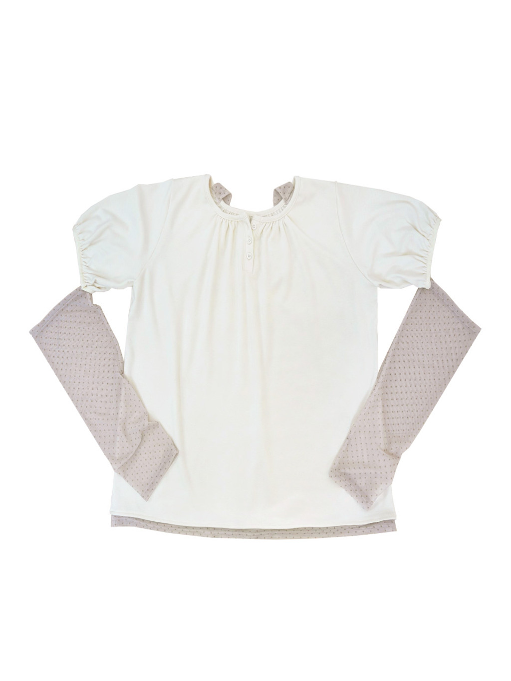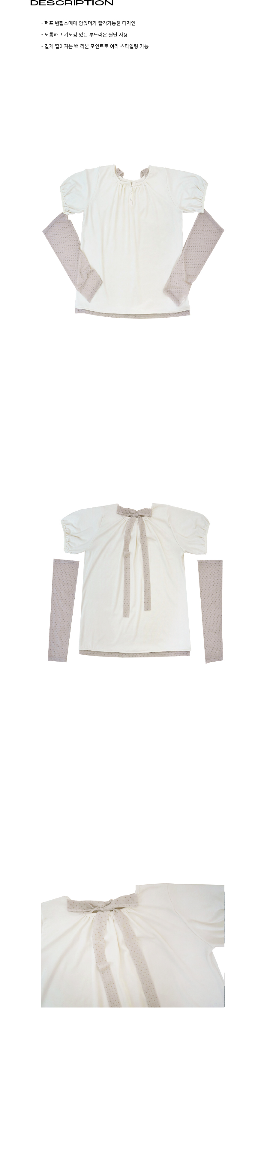 - 퍼프 반팔소매에 암워머가 탈착가능한 디자인
