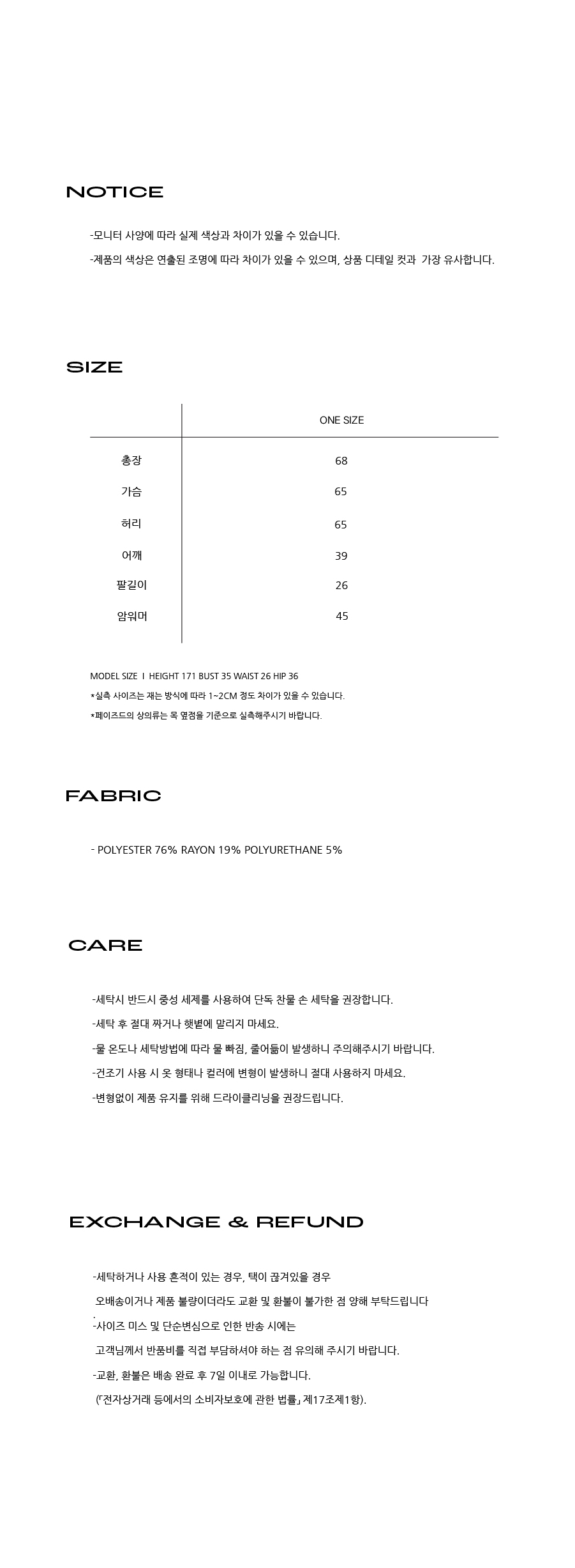 - 표백제사용 및 건조기 사용을 피해주세요