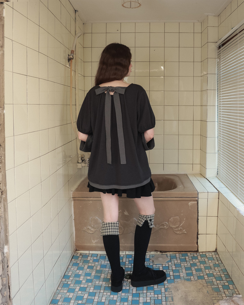 - 길게 떨어지는 백 리본 포인트로 여러 스타일링 가능