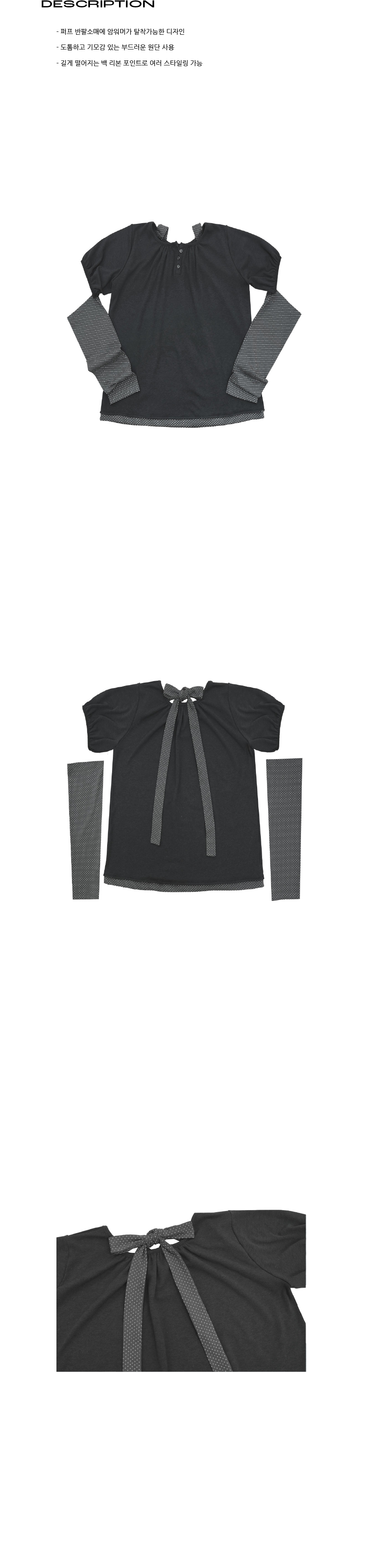 - 퍼프 반팔소매에 암워머가 탈착가능한 디자인