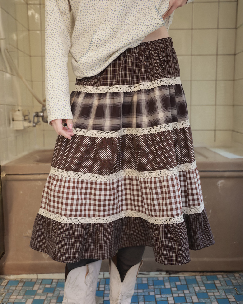 Cottage mixed pattern skirt / brown