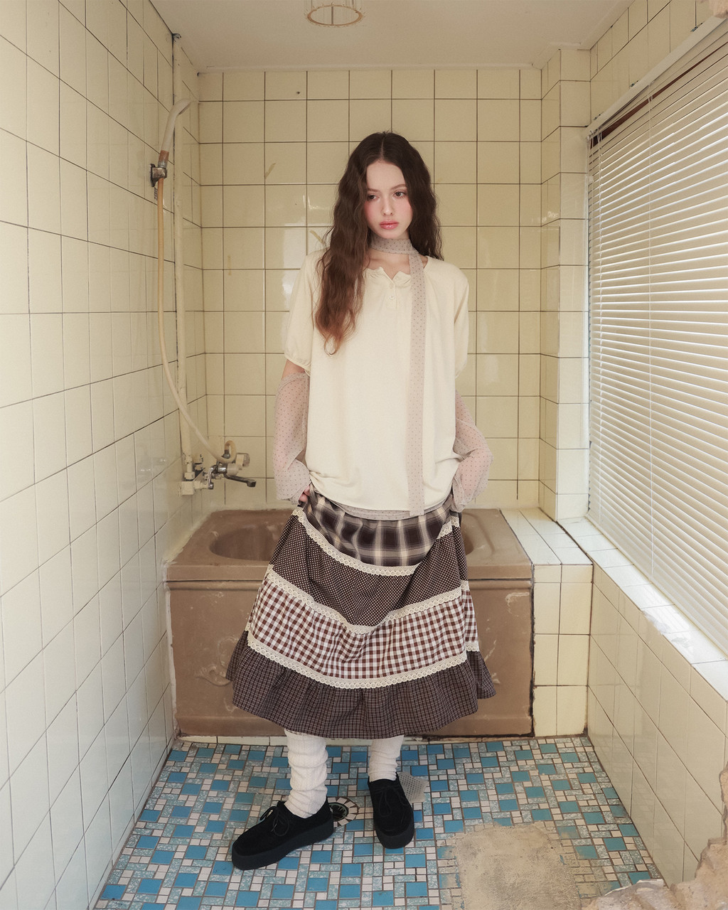 - 4가지 패턴이 믹스된 빈티지한 무드의 롱스커트