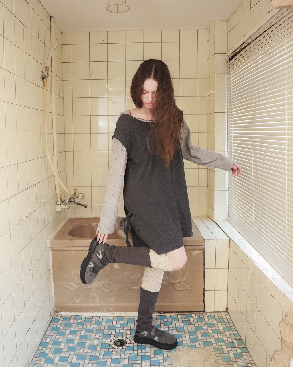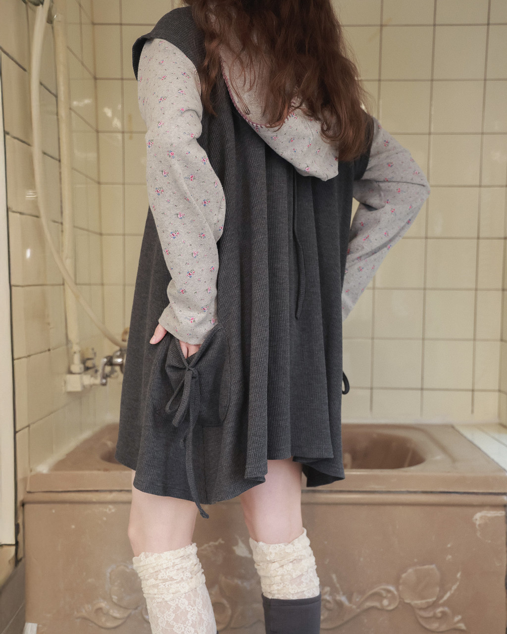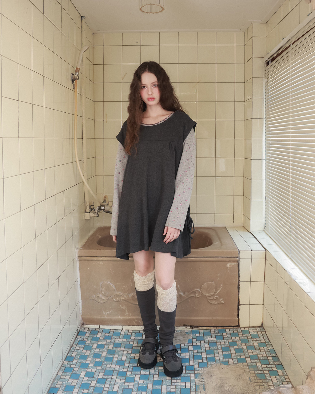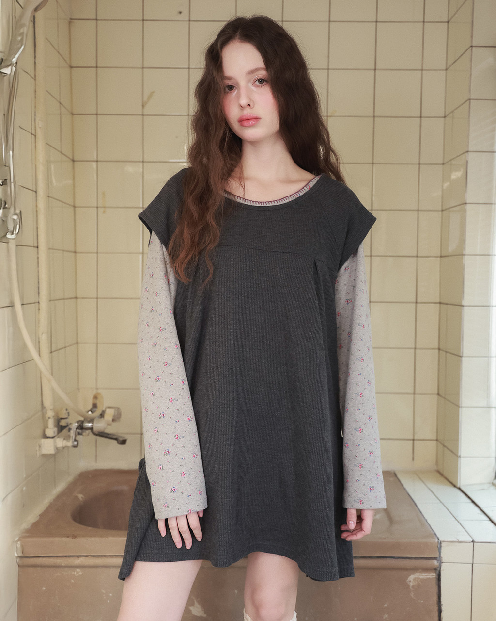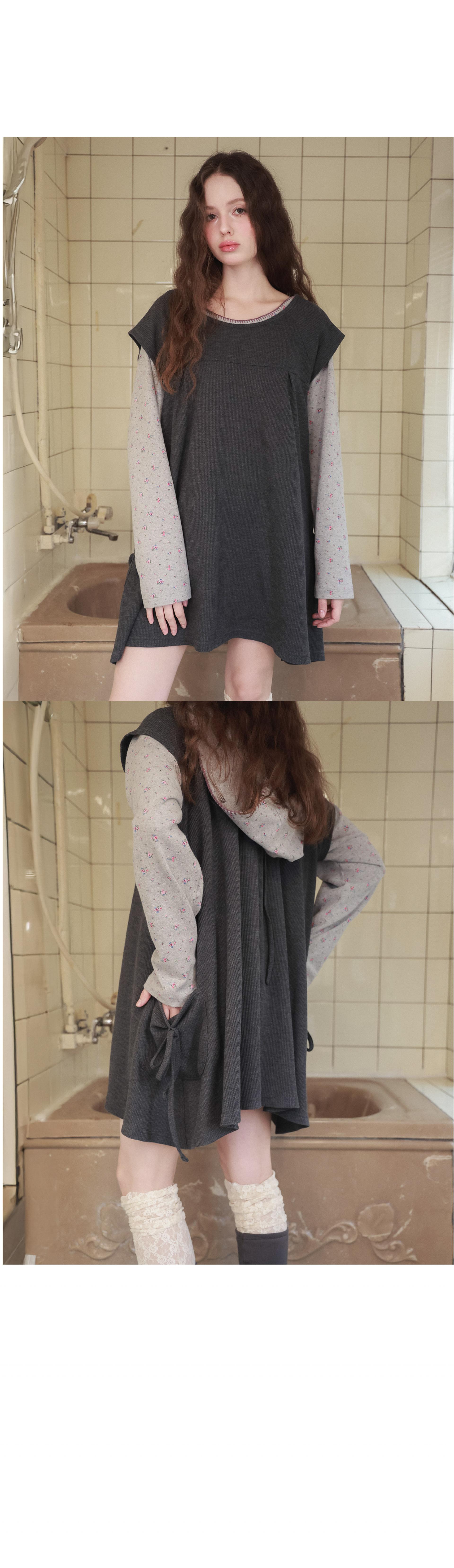Pintuck waffle flare dress / gray