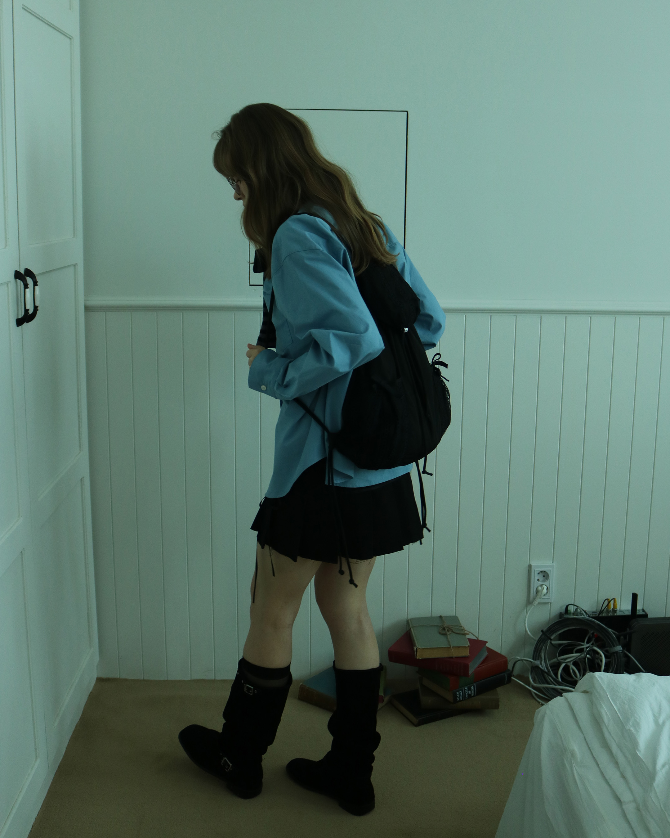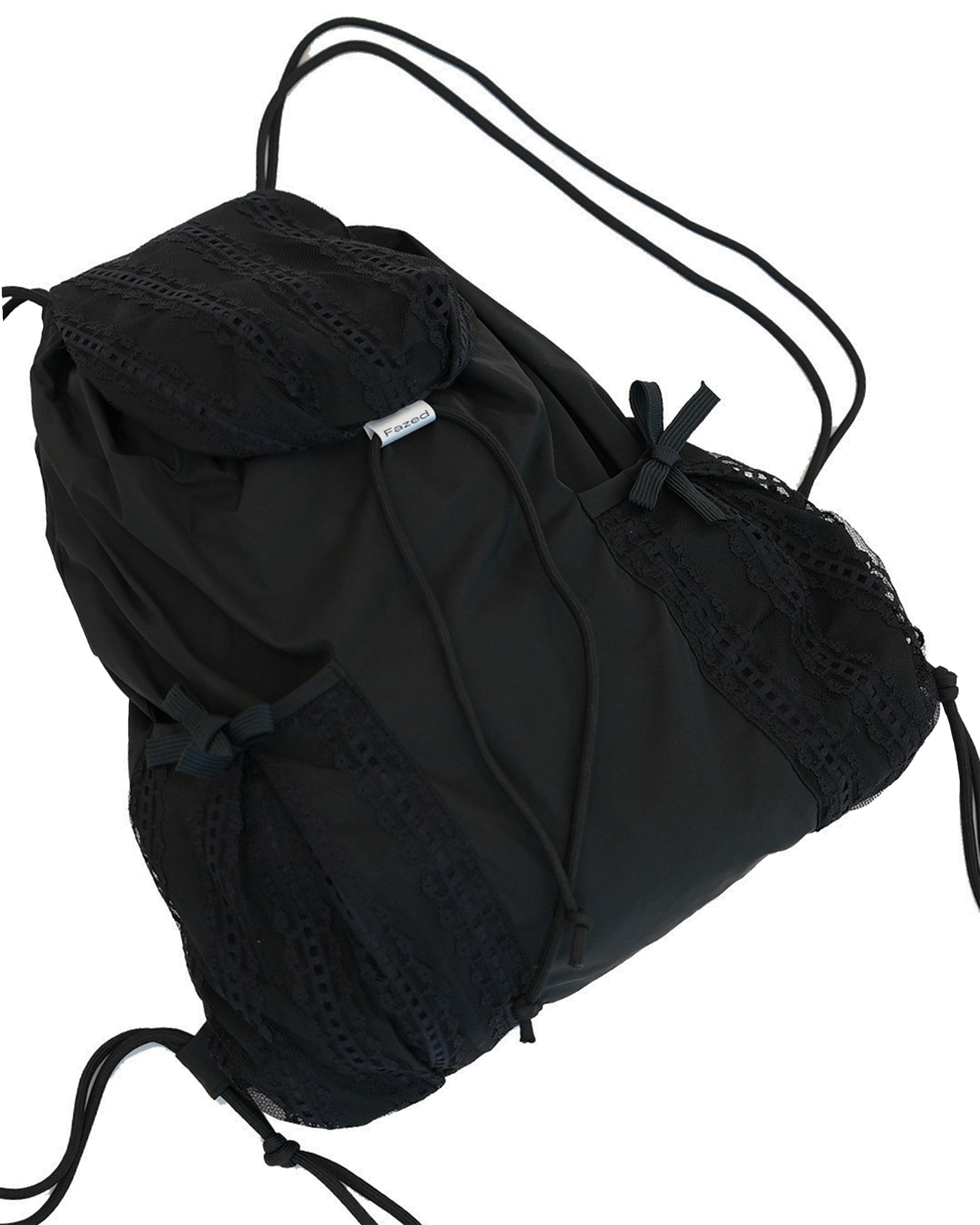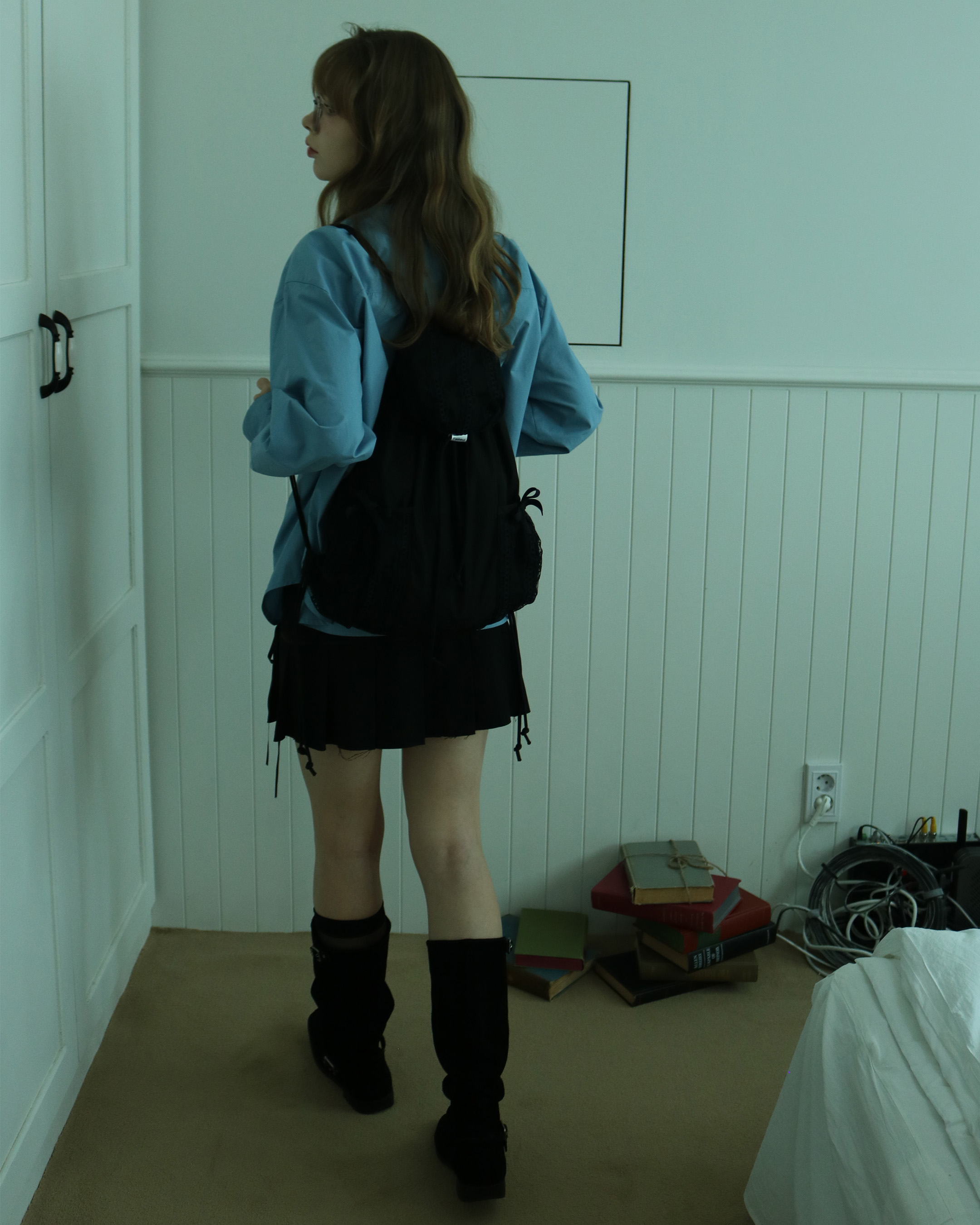- 가방의 앞과 뒤 긴 스트링 디테일