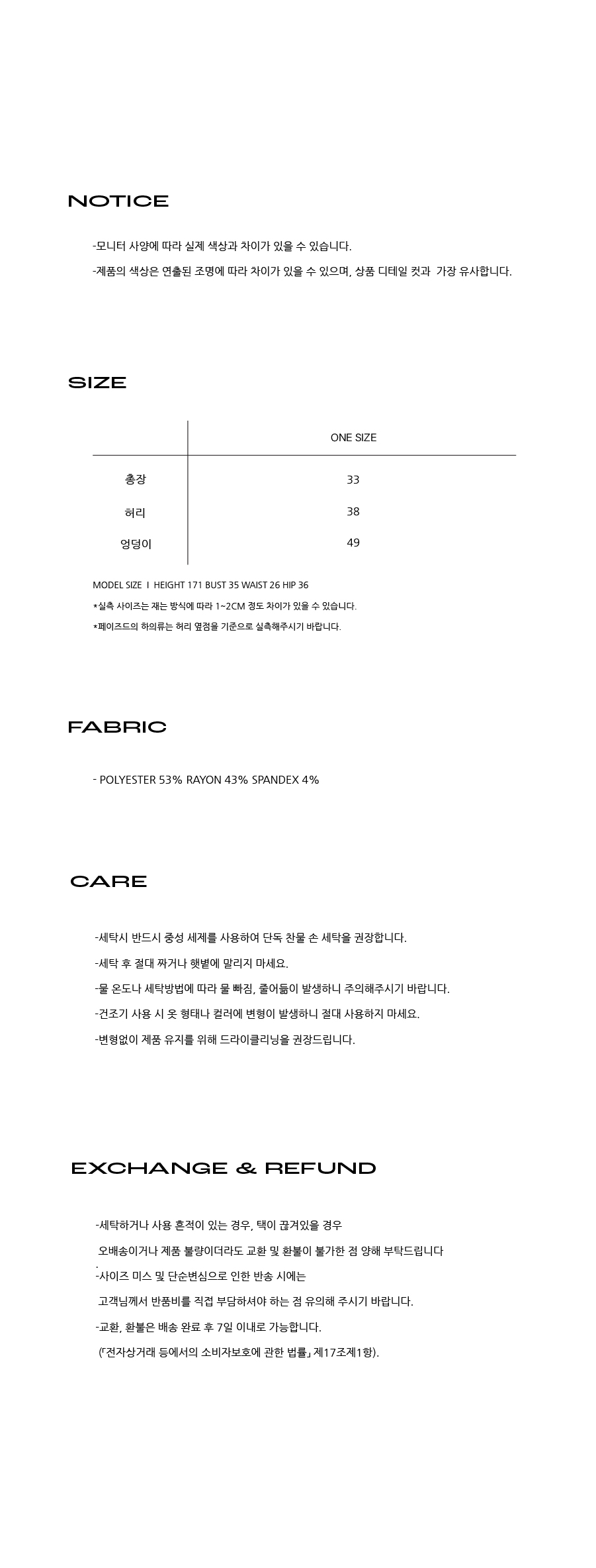 소재 POLYESTER 53% RAYON 43% SPANDEX 4%